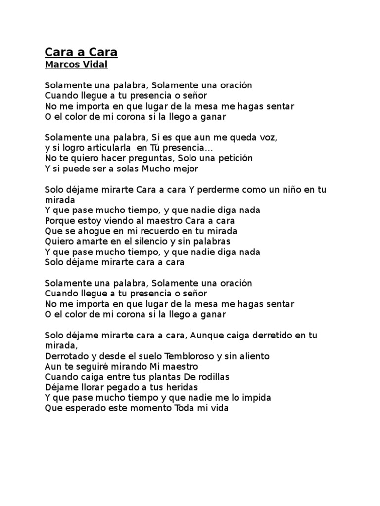 Letra De La Cancion Cara A Cara Arreglado Marcos Vidal