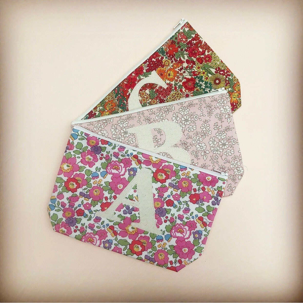 Liberty Print Bolsa De Maquillaje Inicial Personalizada Etsy Espana